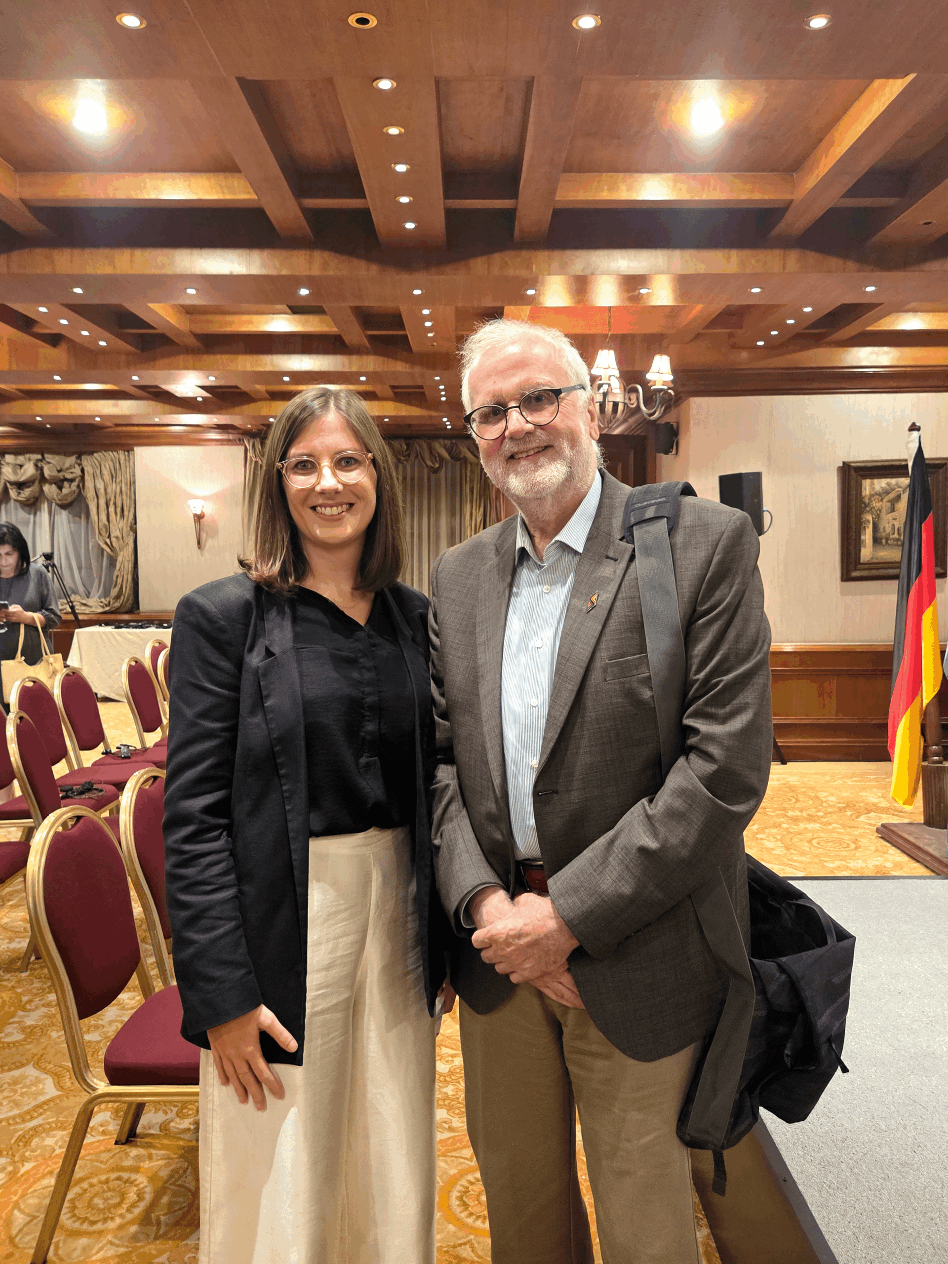 Zu Beginn sprach der Gesandte der Deutschen Botschaft, Guido Kemmerling, in Vertretung des Botschafters (der bei der Ankunft des Deutschen Außenministers in Amman gebunden war) Dr. Edmund Ratka den herzlichen Dank der Botschaft aus. Er erinnerte, dass diese fünf Jahre für Dr. Edmund Ratka ja keine leichten waren: Start mit Corona und in den letzten Jahren der 7. Oktober 2023 und der Gaza-Krieg. Er betonte wie gut und hilfreich der Kontakt zur KAS über alle Jahre war und drückte die Hoffnung aus, dass dies in Zukunft mit der neuen Vertreterin der KAS in Amman sich so fortsetzen werde.